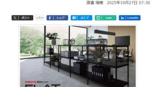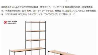 記事タイトル見せる収納に最適な新商品「シェルビングシステム」。11月10日から、ライクイットの公式オンラインストアで予約販売開始サイト名PR TIME'S記事公開日2025年11月10日記事概要効率的で美しい“見せる収納”を実現したオープン...