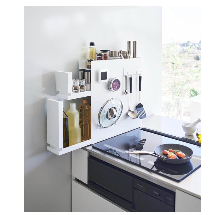 本体はスチール製で安定感もあり、レール付き引き出しは滑らかに開閉。調理中でもスムーズに中身を取り出せる使い勝手の良さもポイントです。キッチンをすっきり整えたい、調味料が多くて収納に困っているという人におすすめ。サイズは、12.5(幅)×52.5(高さ)×12.5(奥行き)cmです。