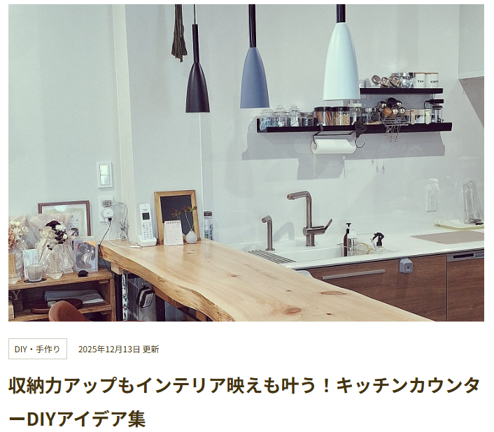作業スペースにするほか、食材の一時置き場、ディスプレイコーナーとしても使えるキッチンカウンターは、ぜひDIYしてみたいもののひとつ。ぜひ実例を参考に、ご自身にぴったりのキッチンカウンターをDIYしてみてください。